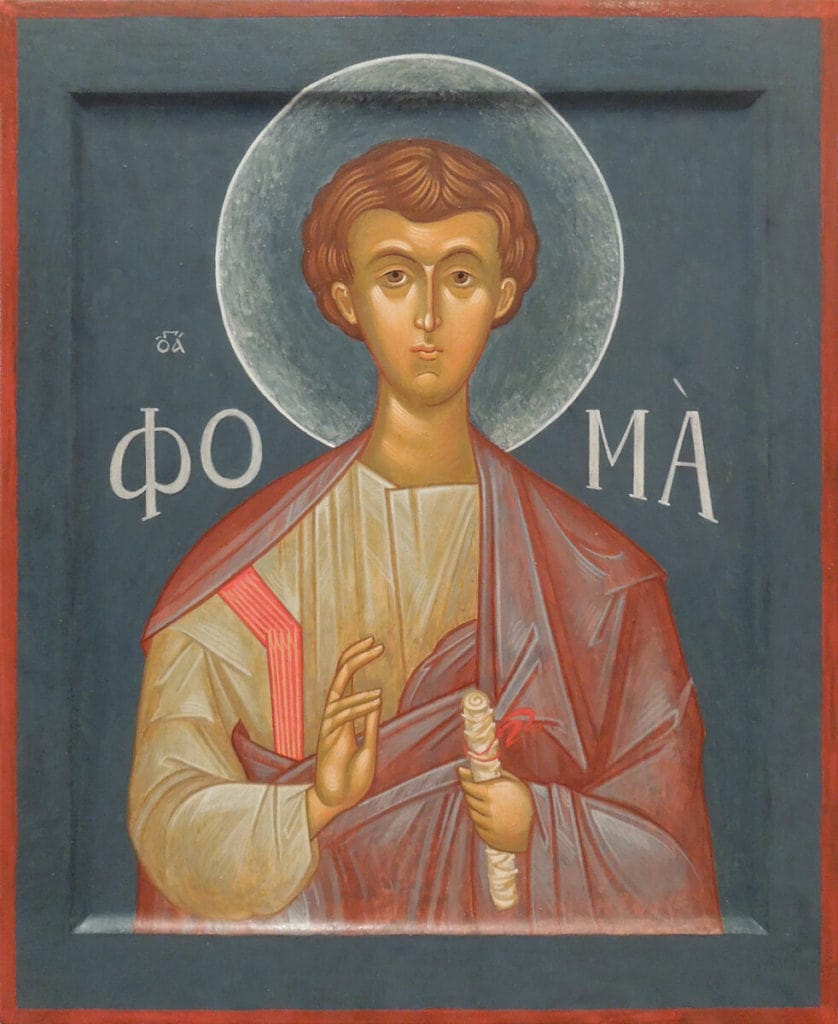 Святой апостол Фома был родом из галилейского города Панеады и занимался рыболовством. Услышав благовестие Иисуса Христа, он всё оставил и последовал за Ним. Апостол Фома входит в число Двоенадесятицы святых апостолов, 12 учеников Спасителя.