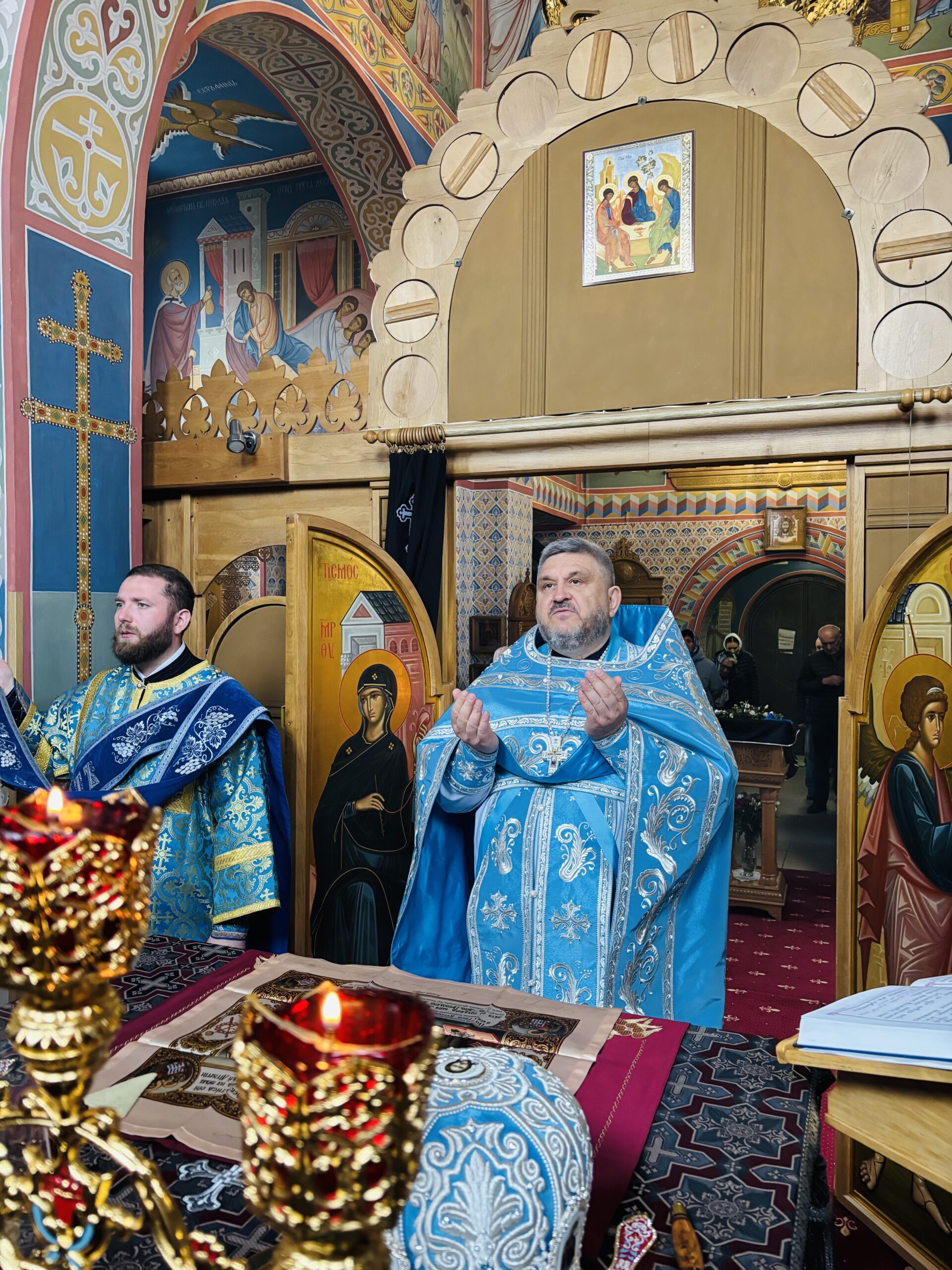Божественную литургию возглавил настоятель храма протоиерей Анатолий Иващук. Его Высокопреподобию сослужили клирики прихода: протоиерей Дмитрий Ахраменко, иерей Дмитрий Вабищевич и диакон Дмитрий Данилевич.