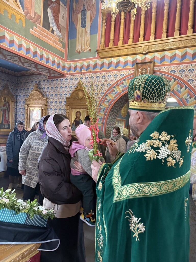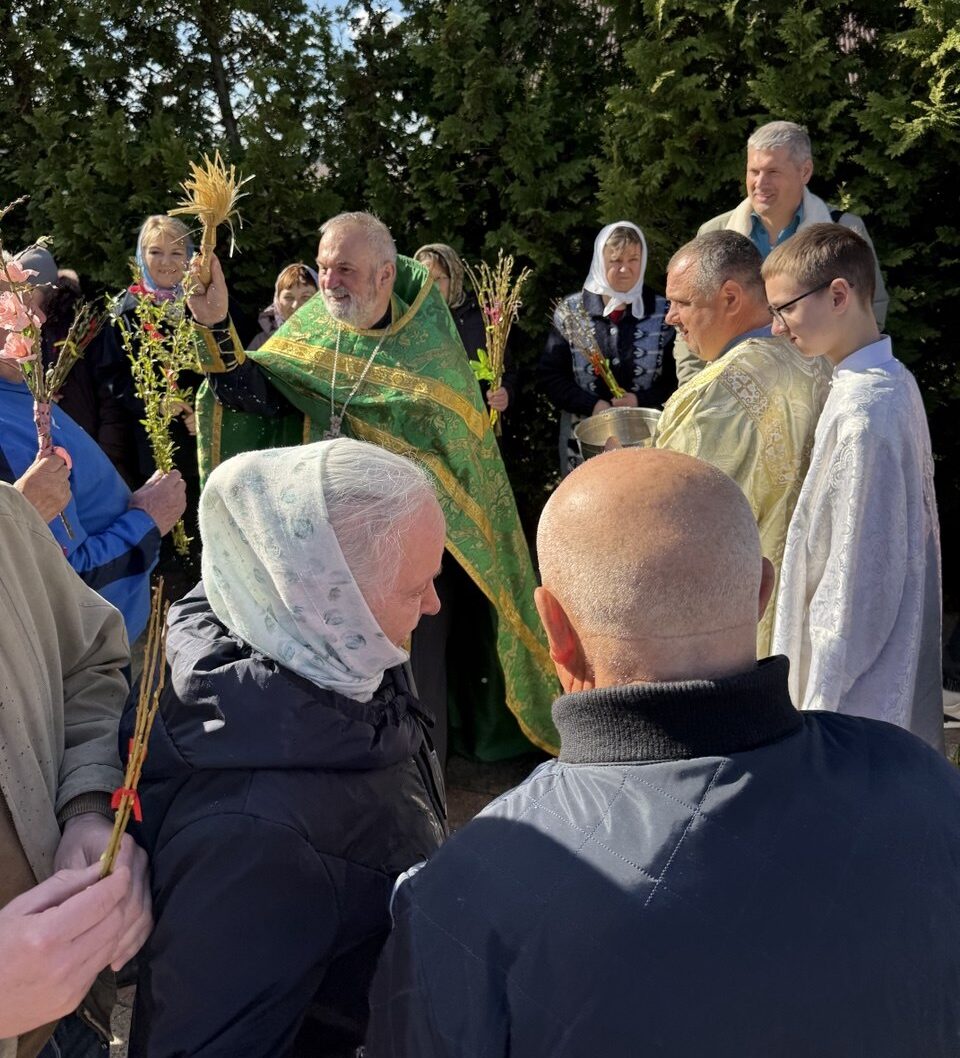 По завершении богослужения отец-настоятель освятил вербы и произнес проповедь на тему праздника.