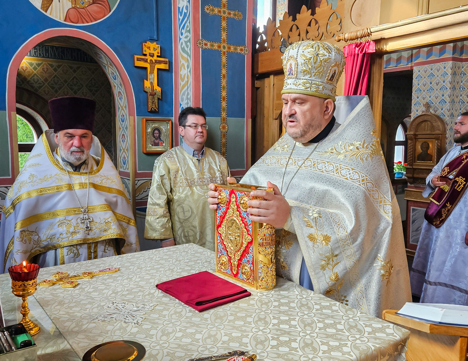 Богослужение возглавил настоятель прихода протоиерей Анатолий Иващук. Его Высокопреподобию сослужили клирик храма протоиерей Дмитрий Ахраменко и диакон Дмитрий Данилевич.