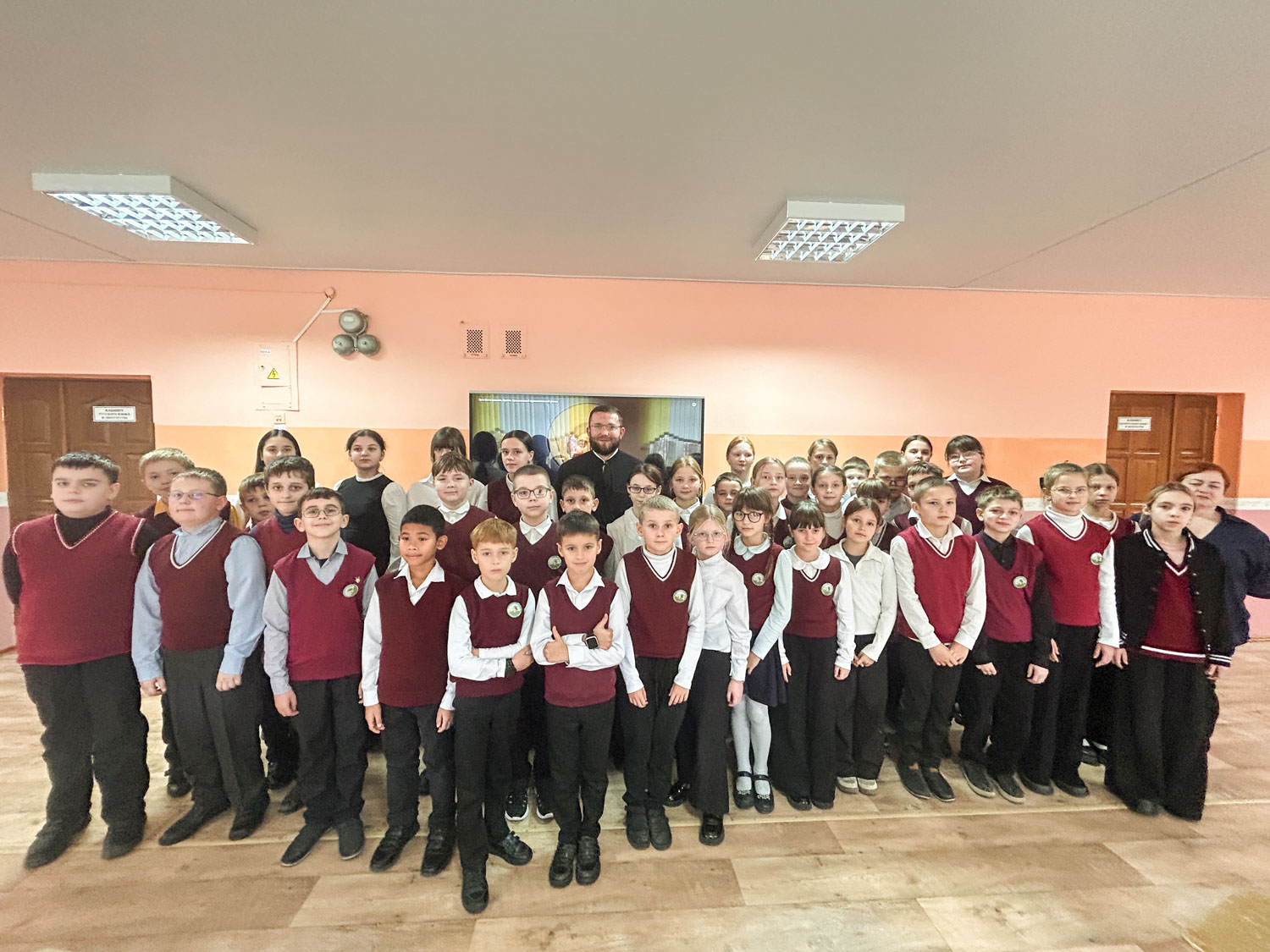 Диакон Димитрий обратил внимание ребят на те грехи и заблуждения, которые человек может совершать как по отношению к себе, так и по отношению к ближнему: равнодушие, эгоизм, несправедливость, пренебрежение к своей совести и обязанностям перед другими. В доступной и тёплой форме он говорил о важности самоуважения, честности, милосердия и ответственности за свои поступки. Особое внимание было уделено идее прощения и возможности изменения через покаяние и добрые дела.