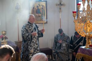 25 марта 2026 года, в среду 5-й седмицы Великого поста, епископ Несвижский Авксентий, викарий Патриаршего Экзарха всея Беларуси, возглавил Литургию Преждеосвященных Даров в храме святого великомученика и целителя Пантелеимона г.п. Мачулищи Минского района.