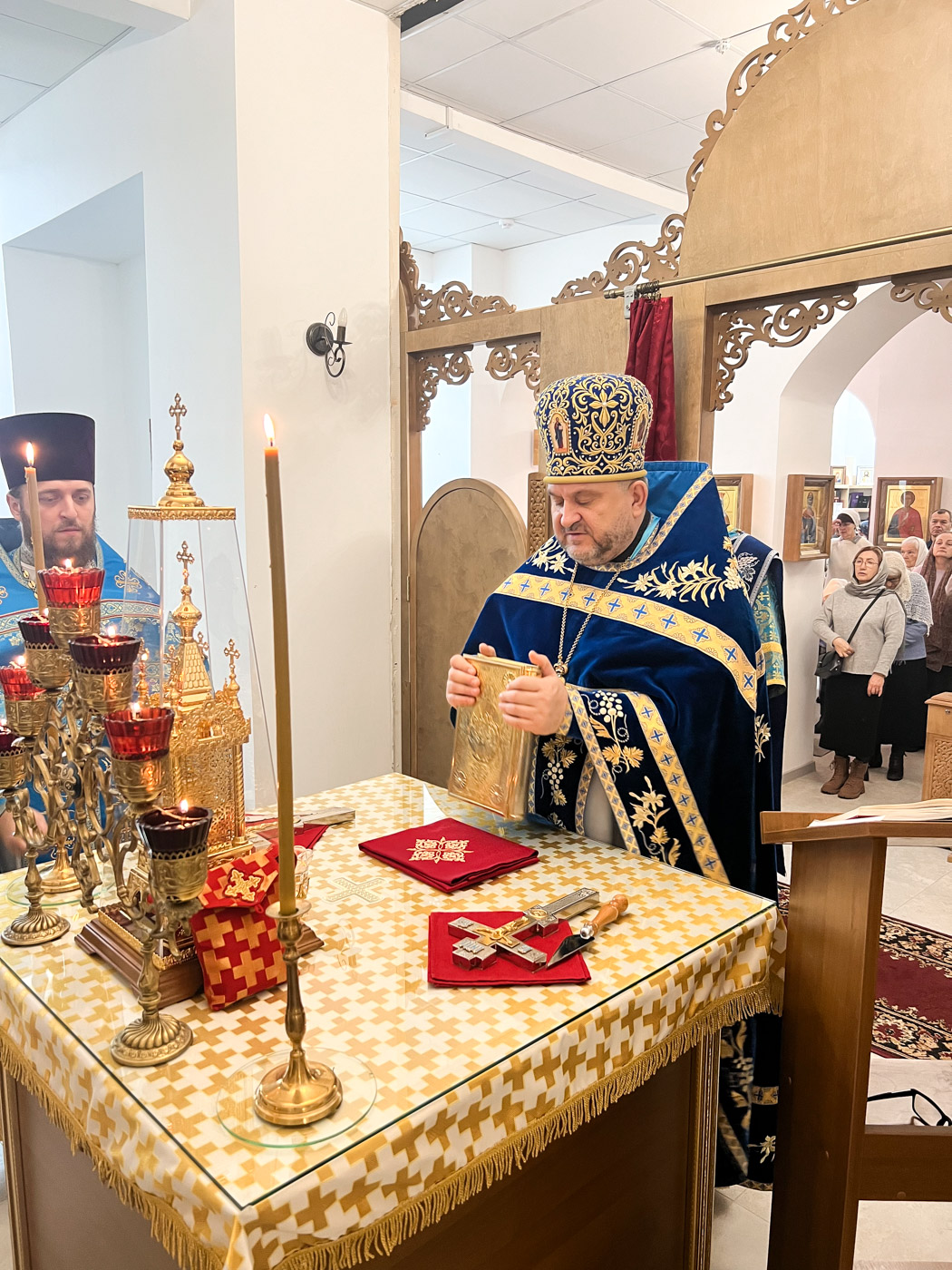 В завершение богослужения отец Анатолий поздравил прихожан, которые носят имя в честь святой великомученицы Екатерины, пожелал им духовной крепости и Божией помощи, а также вручил именинницам святую просфору.