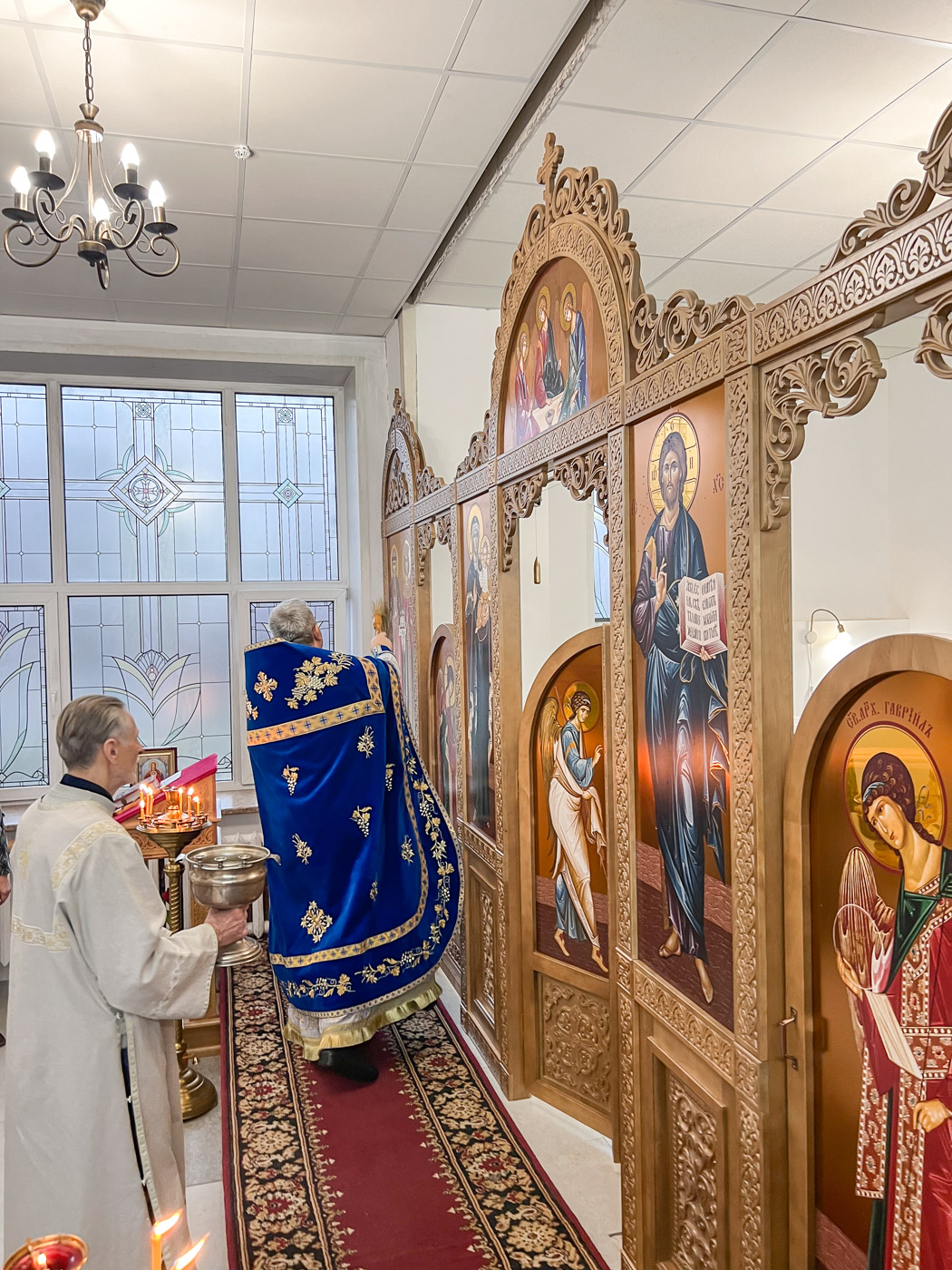 После заамвонной молитвы был совершен чин освящения нового иконостаса, установленного в храме.