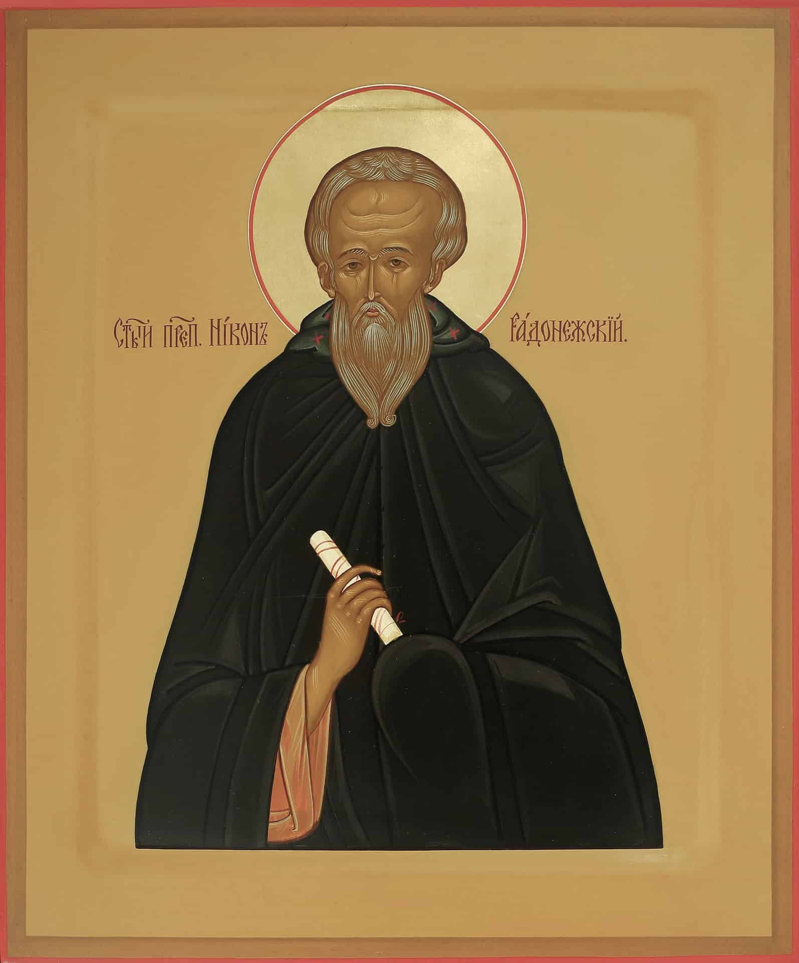 Ученик преподобного Сергия Радонежского. Родился в Юрьеве-Польском. В юном возрасте, услышав об Ангельской жизни преподобного Сергия и желая последовать ему, святой пришел к преподобному Сергию и просил приобщения к лику монашествующих. Преподобный Сергий, провидя в нем будущего великого подвижника и испытывая его смирение и терпение, отослал св. Никона к своему ученику преподобному Афанасию Высоцкому. Здесь преподобный Никон учился умному деланию, изучал Священное Писание и преуспевал в добродетели и чистоте.