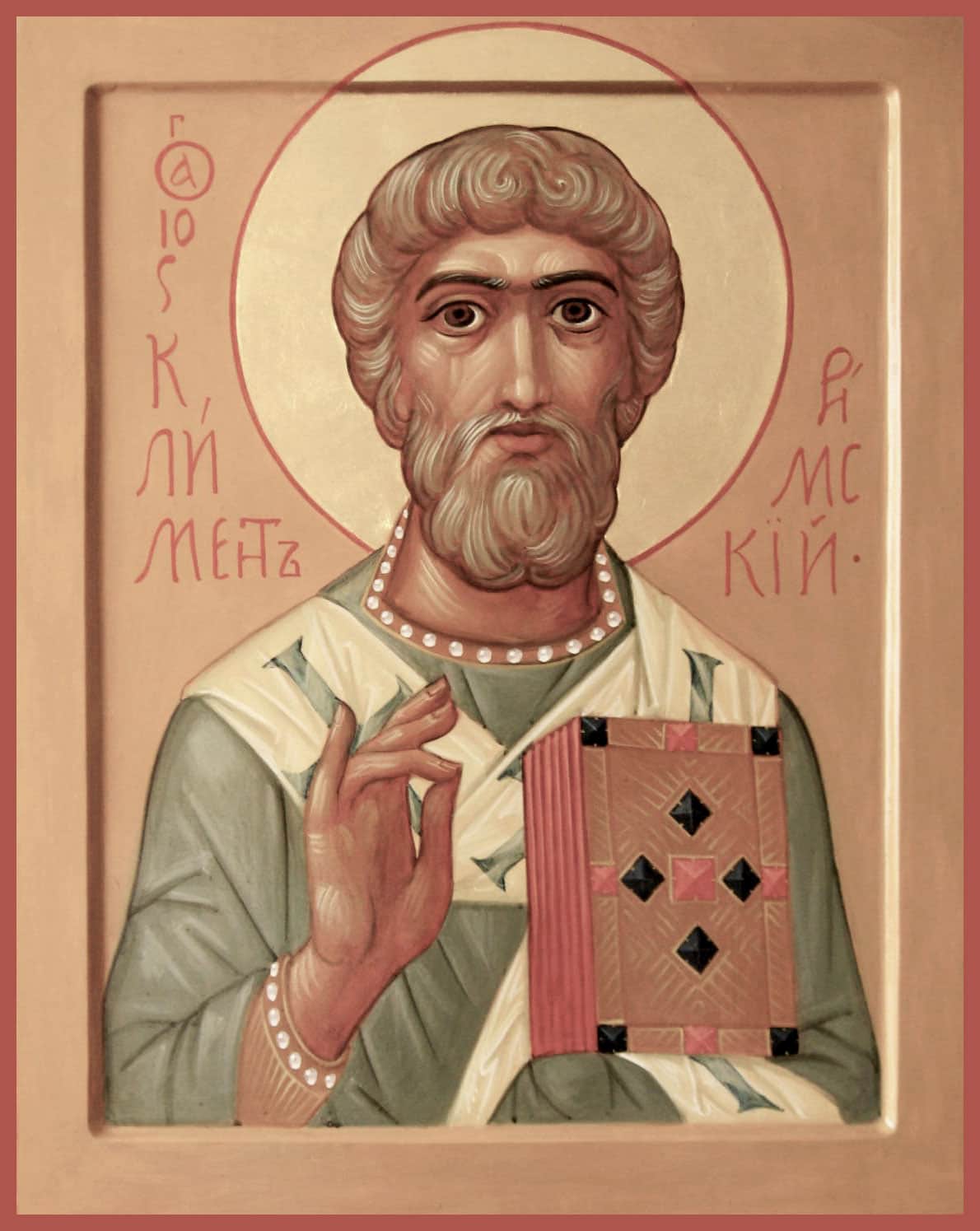 Священномученик Климент – апостол от 70-ти, четвертый епископ (папа) Рима родился в очень знатной семье, состоявшей в родстве с императорской фамилией. Будучи разлучен в младенчестве с родителями и братьями, он вырос среди чужих людей. Как и все знатные римские юноши, Климент получил блестящее образование, но светские науки его не увлекали. Едва став совершеннолетним, он покидает Рим. В Святую Землю, в Палестину, где жил и страдал Христос и проповедуют его апостолы – вот куда влечет юного Климента.