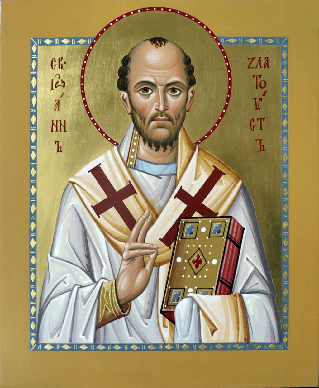 Святитель Иоанн Златоуст, архиепископ Константинопольский – один из трех вселенских святителей вместе со святителями Василием Великим и Григорием Богословом. Родился в Антиохии ок. 347 года, в семье военачальника. Его отец, Секунд, умер вскоре после рождения сына; мать, Анфуса, не стала более выходить замуж и отдала все силы воспитанию Иоанна. Юноша учился у лучших философов и риторов, рано обратился к углубленному изучению Священного Писания и молитвенному созерцанию. Святитель Мелетий, епископ Антиохийский (память 12 февраля), полюбивший Иоанна как сына, наставил его в вере и в 367 году крестил. Через три года святой Иоанн был поставлен во чтеца. После того, как святитель Мелетий был отправлен в ссылку императором Валентом, в 372 году, святой Иоанн совместно с Феодором (впоследствии – епископом Мопсуестским) учился у опытных наставников подвижнической жизни, пресвитеров Флавиана и Диодора Тарсийского. Когда скончалась мать святого Иоанна, он принял иночество, которое называл «истинной философией». Вскоре святого Иоанна сочли достойным кандидатом для занятия епископской кафедры. Однако он из смирения уклонился от архиерейского сана. В это время святой Иоанн написал «Шесть слов о священстве», великое творение православного пастырского богословия. Четыре года провел святой в трудах пустыннического жительства, написав «Против вооружающихся на ищущих монашества» и «Сравнение власти, богатства и преимуществ царских с истинным и христианским любомудрием монашеской жизни». Два года святой соблюдал полное безмолвие, находясь в уединенной пещере. Для восстановления здоровья святой Иоанн должен был возвратиться в Антиохию. В 381 году епископ Мелетий Антиохийский посвятил его во диакона. Последующие годы были посвящены созданию новых богословских творений: «О провидении», «Книга о девстве», «К молодой вдове» (два Слова), «Книга о святом Вавиле и против Юлиана и язычников».
