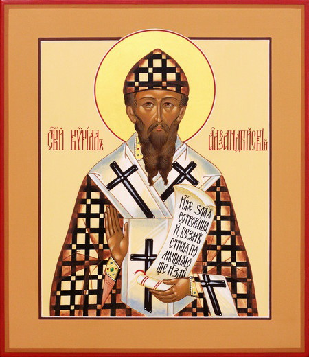По смерти патриарха Феофила св. Кирилл единодушно был избран на патриарший престол Александрийской Церкви. Удаляя из среды своей паствы врагов св. веры – иудеев и язычников, св. Кирилл заботился и об утверждении своих пасомых в вере и благочестии. Его пламенная ревность о чистоте христианского учения и непреклонная твердость в защите веры особенно обнаружились в борьбе с Несторием, возмутившим своей ересью Церковь. Святитель Кирилл писал увещевательное послание к Несторию и письма императору Феодосию Младшему, папе Целестину I и в разные монастыри, опровергая мнения Нестория и излагая истинное христианское учение о воплощении Сына Божия. На III Вселенском Соборе, созванном в 431 г. в городе Ефесе, святитель Кирилл был председателем. Скончался святитель в 444 г.